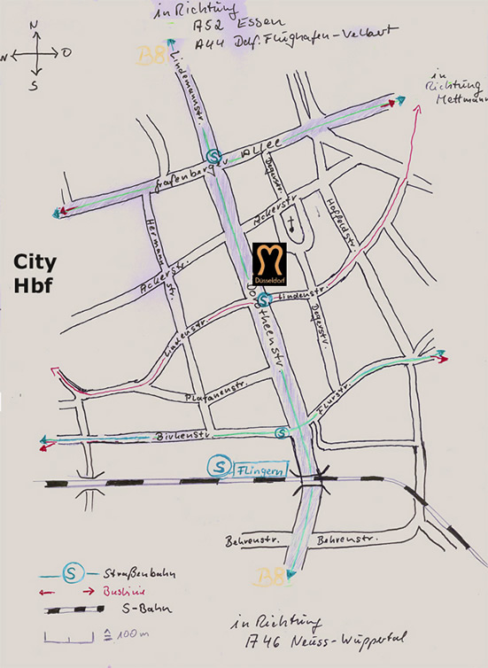 Parkplätze sind leider rar gesät, versucht Euer Glück in den Nebenstraßen oder benutzt den ÖPNV mt folgenden Verbindungen: S8 S11 S28 (S-Bf Flingern), Straßenbahn 709, 719 (S-Bf Flingern), 703, 712, 713 (Lindemannstr.), 706 (Lindenstr.) oder Buslinie 834 (Lindenstr.). Von allen Haltestellen seid Ihr max. 5 Gehminuten von uns entfernt.