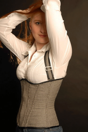 ein vielseitiges Unterbrustmodell, das hervorragend den Busen formt und zur Geltung bringt. Tragbar zur Alltagsmode aber auch im Büro, Geschäft o.ä. Linkes Bild zeigt das Modell im Pepita-Design mit Neckholder.